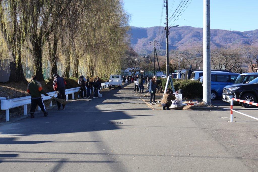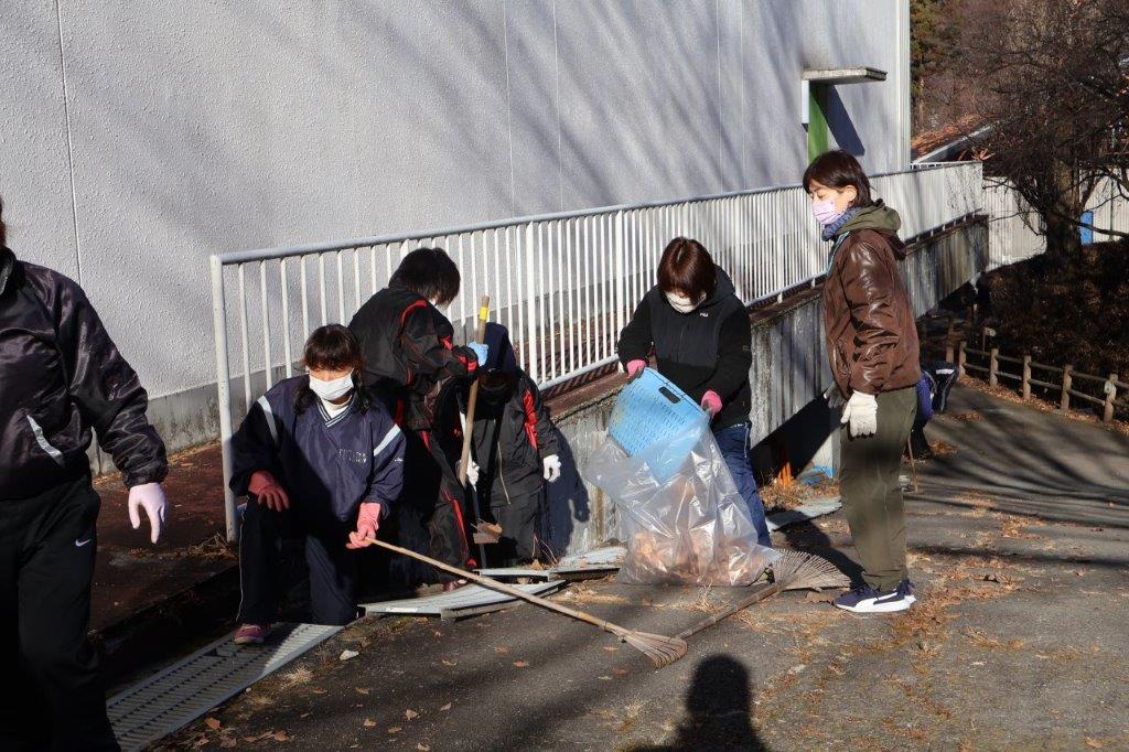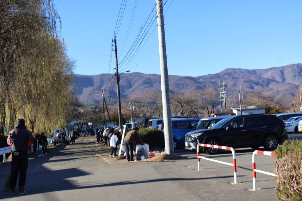 各協会から約800名の会員の皆さんに参加していただき、早朝の寒い中で落葉や枝など集めたり、側溝の清掃等の作業をしました。